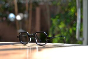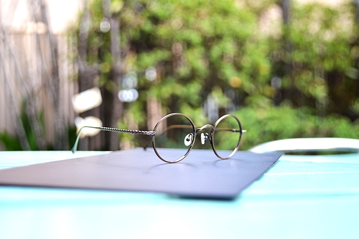編み込み模様が施されたテンプル、柔らかな曲線で描かれたブリッジに