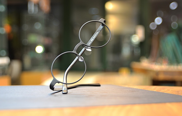 薄いチタン素材を溝掘りしたデザインは、絶妙な線の太さで加減のいい存在感です。