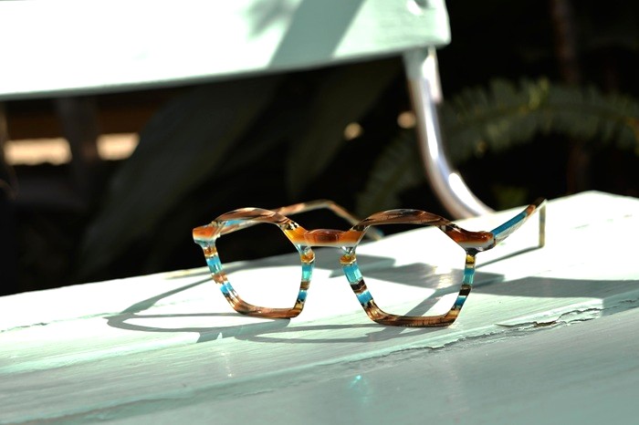 湖と大地の香りを思わせるオリジナル生地が美しいJVG(ヨハン・フォン・ゴイザン)が入荷しました。両レンズの外側には目の錯覚かと思うくらいに僅かな凸を見て取ることができるなど、配色はもとより描線も独特な1本です。ご来店の折には、是非ともこんな風に春を思わせる陽差しのなかでご覧いただけたら。