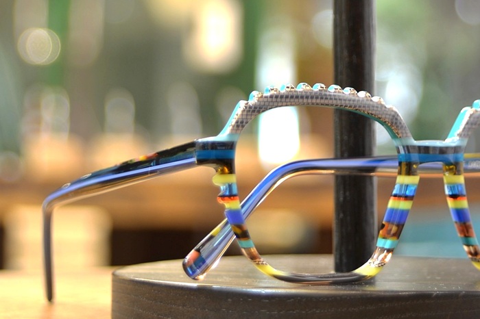 ツルンとした直線のほか、特に気になるジグザクは、色彩豊かなブランドオリジナルのアセテート生地(綿花由来のプラスチック)を存分に味わせてくれる気がします。ちなみに上リムの凹凸部分は、グレージュとベージュに加えてドットにも見えるグレーのキューブや線も相まって、それだけでも見応え充分。インパクトも活かしつつ綺麗に収まる、そんな不思議で素敵な1本です。