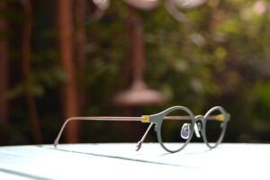 新しい玉形でのモデルです。レンズのカット面に細い溝掘りをし、そこに
