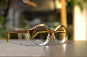 ツルンとしたシートメタルの質感がよく映えるパープルの眼鏡。光の加減によって時折青みも楽しめるなど色のりのよさも魅力です。テンプルに配された独自素材のプラスチックは、その形状も相まってマルクスならではの掛け心地を実現。こちらのM2のほかにもいくつものシリーズがあるのですが、デザインと掛け心地のよさからなるマルクスの世界観には一度体感したら忘れられない得難さがあります。
